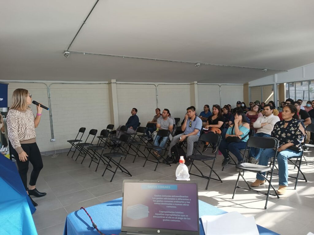 En esta oportunidad, los futuros propietarios y propietarias del Condominio Carmen Bascuñán se reunieron con el equipo de Conavicoop para la realización de un taller, parte del Plan de Integración Social, en el que conversamos sobre las responsabilidades que conlleva la casa propia, además de consejos sobre distintos procesos legales, entregados por una de nuestras abogadas.